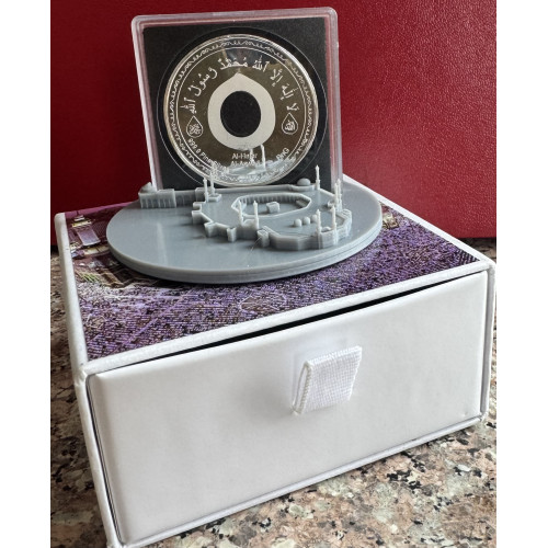 Also Featuring a UNIQUE 3d printed AL-HARAM of MECCA , a model designed as a coin stand , this idea captures the beauty of the medallion and allows you to show it off rather than pack it away .