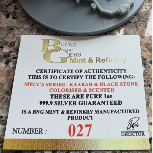 • Product Code: 1oz SILVER MECCA KAABAH & BLACK STONE COLORISED,SCENT,3D