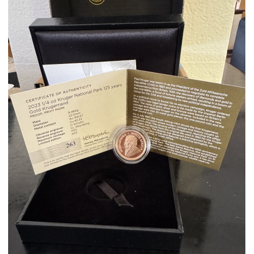 2023 KRUGERRAND KRUGER NATIONAL PARK PRIVY MINT MARK 1/4oz PROOF FINE GOLD - IN SAMINT BOX AS ISSUED