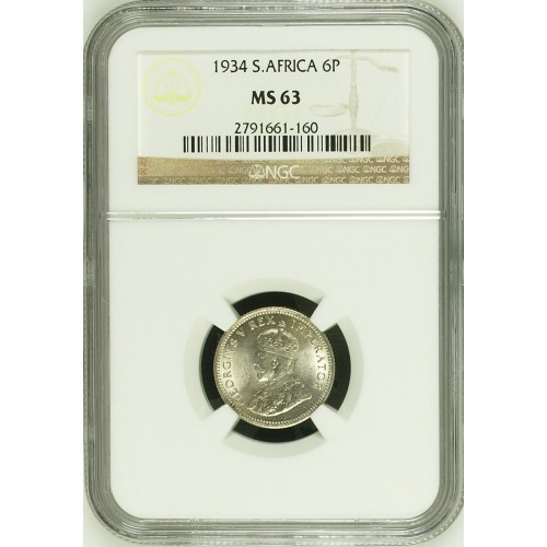 Tags: 1934 UNION SA 6 PENCE - MS63 - NGC HIGH GRADE