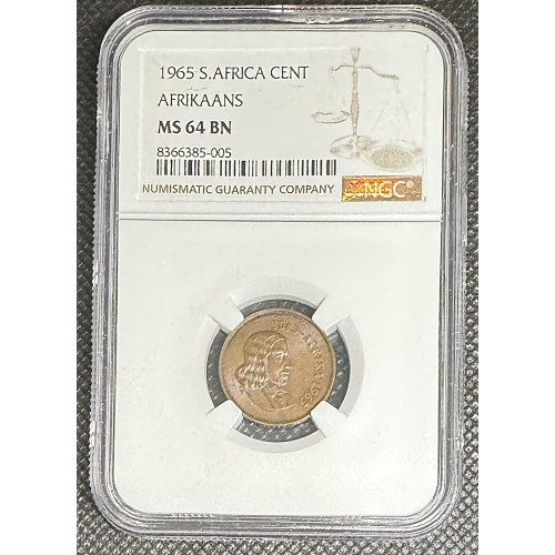 - Product Code: 1965 RSA 1 CENT - AFRIKAANS LEGEND - MS64BN - NGC GRADED