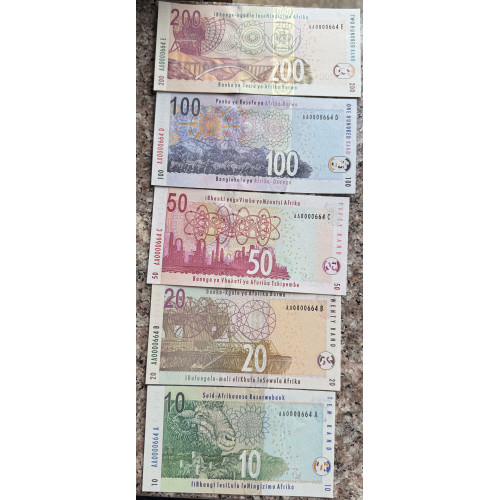 2008 SET OF NOTES - MBOWENI 2nd ISSUE - AA0000664A TO AA0000664E FULL SET ALL MATCHING NUMBERS IN FOLDER