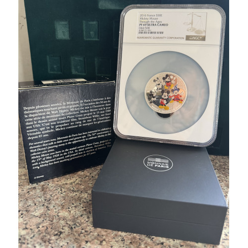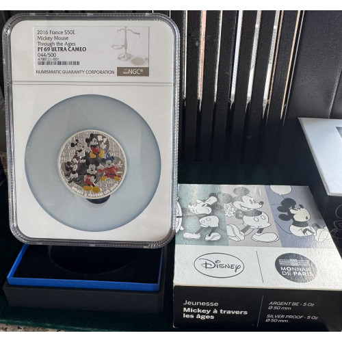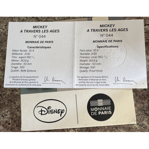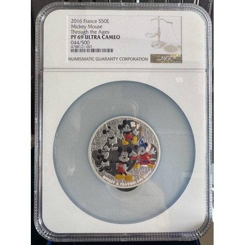 - Product Code: 2016 MICKEY MOUSE 50 EURO *THROUGH THE AGES* 5.25oz SIL PF69UC