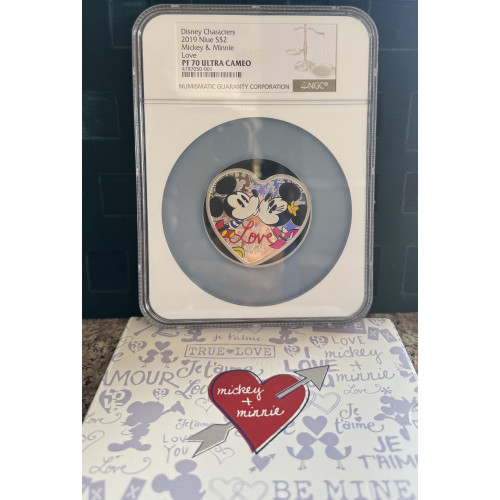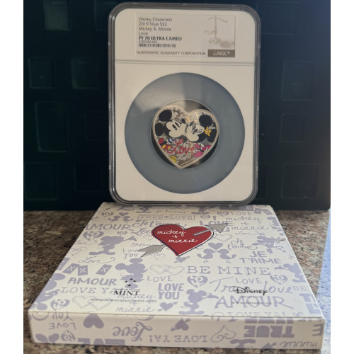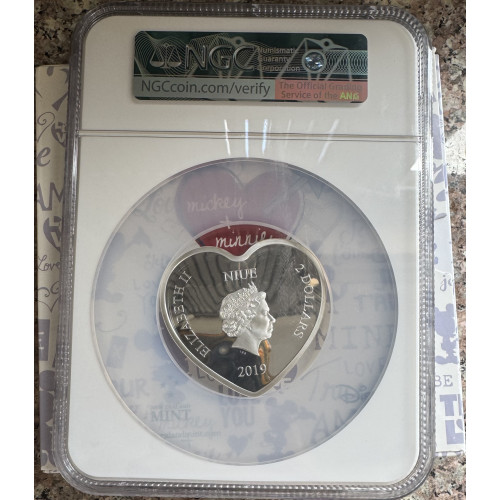 2019 DISNEY CHARACTERS $5 NIUE *MICKEY & MINNIE* HEART SHAPE 1oz SILVER 999.9 FINE - PF70UC NGC GRADED FINEST KNOWN
