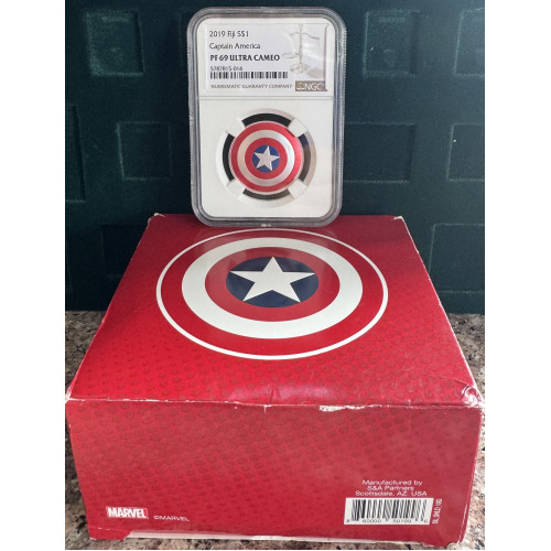 - Product Code: 2019 FIJI S $1 *CAPTAIN AMERICA* SHIELD 1/3oz SILVER PF69UC