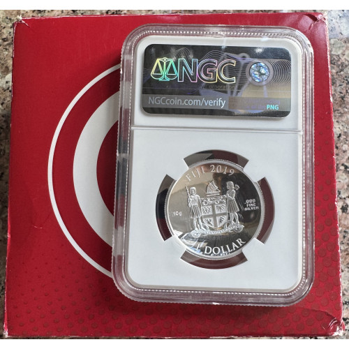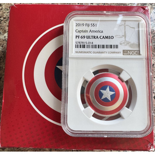 2019 FIJI S $1 *CAPTAIN AMERICA* SHIELD - 1/3oz SILVER 999.9 FINE PF69UC NGC GRADE