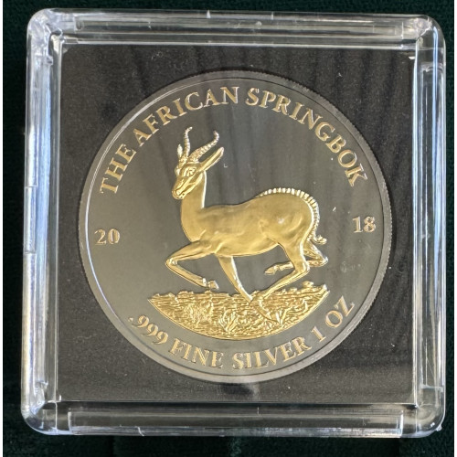 2018 SILVER - THE AFRICAN SPRINGBOK 1000 FRANCS CFA - RHUETHINIUM PLATED 1oz FINE SILVER & SELECTIVE GUILDING