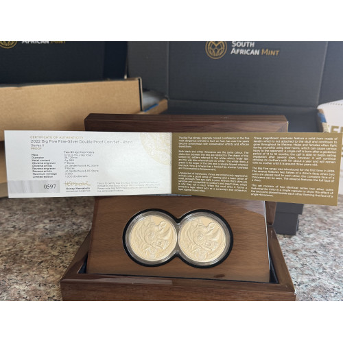2022 BIG 5 - SERIES 2 - 1oz SILVER PROOF 2 x RHINO DOUBLE CAP -