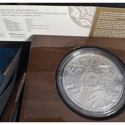 - Product Code: 2023 BIG 5 - SERIES 2 - 5oz SILVER PROOF *LEOPARD*