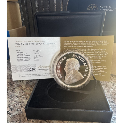 2024 KRUGERRAND 2oz FINE SILVER *PROOF* IN SAMINT BOX & CERTIFICATE