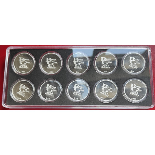 10 BY 1 OUNCE MINTED ROUNDS - CERTIFIED