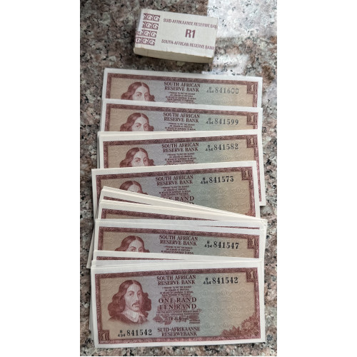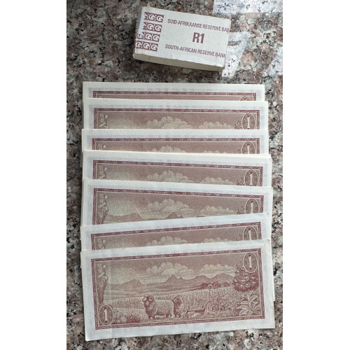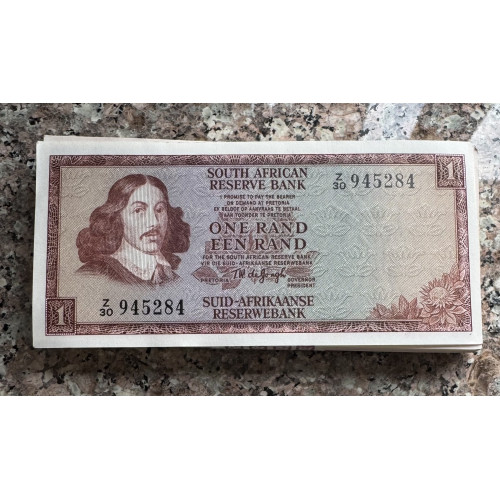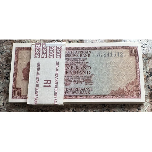 R1 NOTES FROM BUNDLE OF 100 - UNCIRCULATED AS ISSUED - TW DE JONG 1975 - 3RD ISSUE