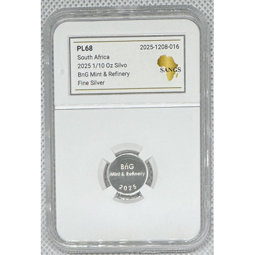 1/10oz SILVER 999.9 FINE - 1 SILVO 2025 - GRADED PL68 SANGS 2ND FINEST