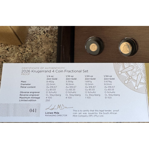 - Product Code: 2026 KRUGERRAND 4 COIN SET - 1/4+1/10+1/20+1/50oz PROOF GOLD