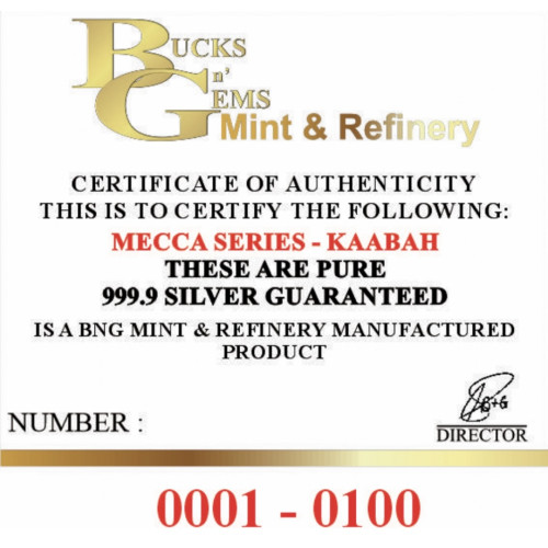 Tags: 1oz SILVER 999.9 MECCA "KAABAH & BLACK STONE AL-HAJAR AL-ASWAD-BULK CRATE OF 300oz