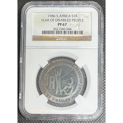 1986 S1R SILVER RAND - YOD - YEAR OF THE DISABLED PF67 - NGC FINEST KNOWN GRADE - 4 COINS EVER GRADED IN "PF"