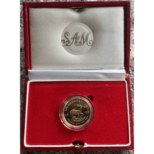 1990 KRUGERRAND PROOF 1/4oz FINE GOLD "PROOF" AS ISSUED FROM MINT IN BOX - 8.4825gr